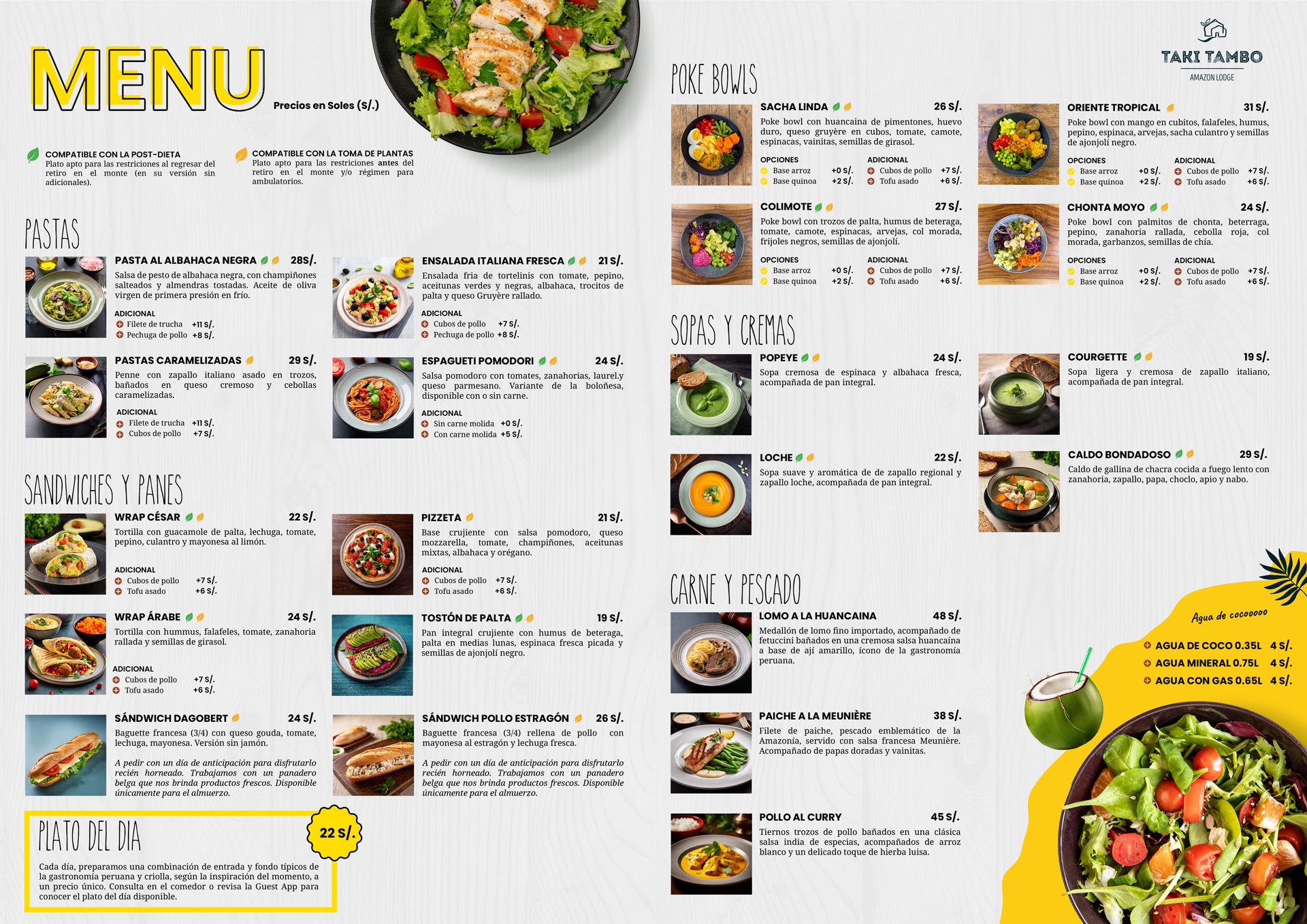 Au Taki Tambo Lodge, nous vous proposons un menu de nourriture saine, préparée avec soin, comme à la maison.