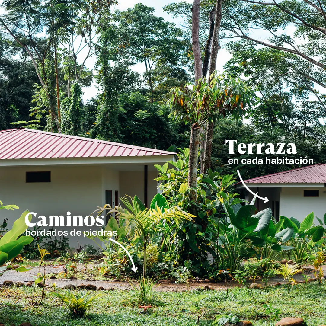 - Terrazas privadas con hamacas y colibríes